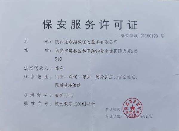 陝西(xī)龍焱鼎威保安公司 陝西(xī)龍焱鼎威保安公司
